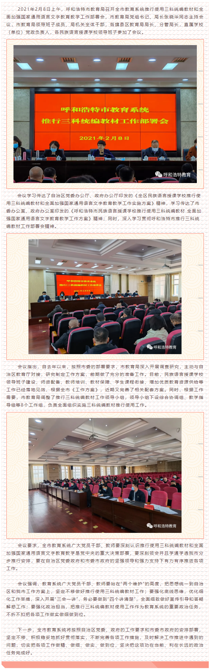呼和浩特市教育局召開推行三科統(tǒng)編教材和全面加強國家通用語言文字教育教學(xué)工作部署會