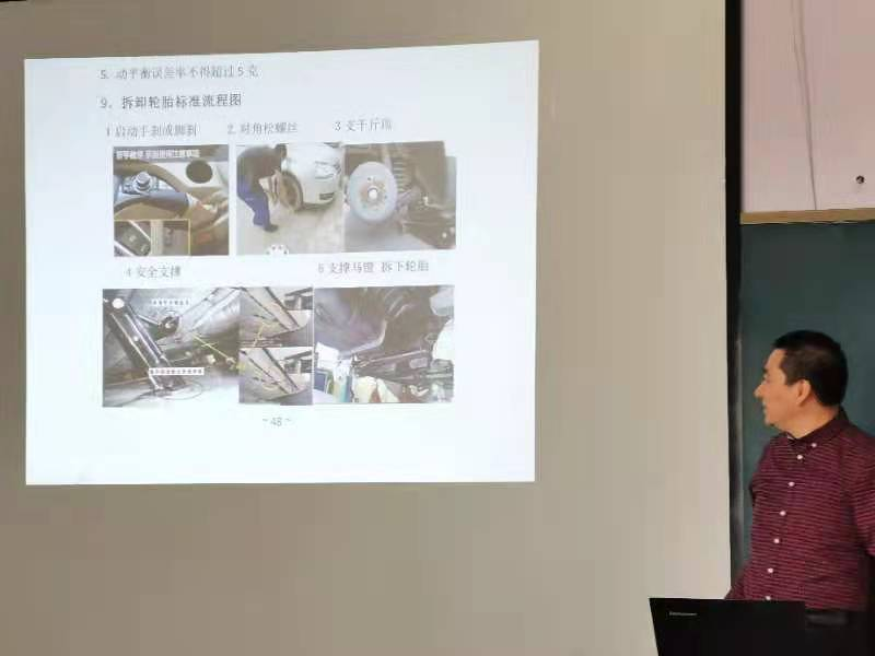 張總為學(xué)生全面介紹了一個汽車公司從接待到修理的過程及細(xì)節(jié),并將吉安特公司內(nèi)部訓(xùn)資料以PPT的形式展現(xiàn)給學(xué)生,專業(yè)內(nèi)容涉及汽車四級員工必備技能,如空調(diào)幾大濾芯及補(bǔ)胎、換機(jī)油等。明確了各級別員工所在崗位職責(zé)及技能,給予學(xué)生更明確的未來發(fā)展方向。