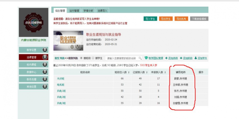1、學(xué)院開(kāi)設(shè)的所有在線課程,都設(shè)置了任課教師和輔導(dǎo)員雙重管理,即抓教師教又抓學(xué)生學(xué);