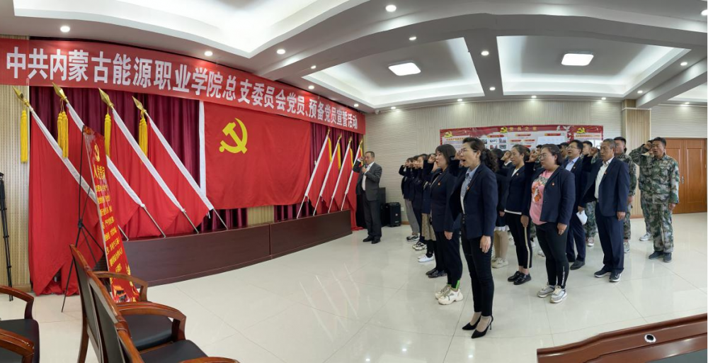 活動現(xiàn)場,全體黨員、預備黨員佩戴黨徽,合唱《沒有共產(chǎn)黨就沒有心中國》。舉起右拳,面向黨旗莊嚴宣誓。鏗鏘的誓詞,堅定的承諾,讓每一位黨員同志的心靈再次受到震撼和洗禮。