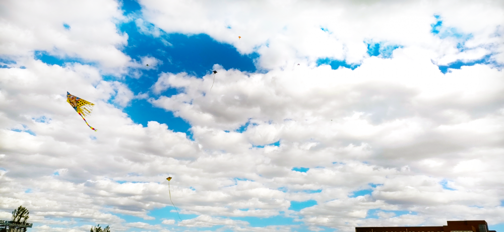 在比賽開(kāi)始前,同學(xué)們帶著各自班級(jí)提前準(zhǔn)備好的風(fēng)箏來(lái)到比賽場(chǎng)地集合,準(zhǔn)備大展身手。在哨聲吹響的那一刻,同學(xué)們都各顯神通,努力讓風(fēng)箏飛向天空,天上的風(fēng)箏你追我趕。隨著這溫暖的春風(fēng),五顏六色的風(fēng)箏越飛越高,越飛越遠(yuǎn),有蛇、有蝴蝶、有蝙蝠、有飛機(jī)等,各式各樣的風(fēng)箏在空中翱翔。