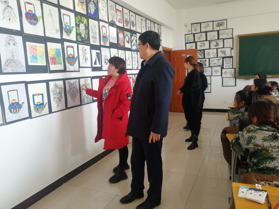 學院黨總支書記陳澤鋒、副院長張瑞英等領導和老師紛紛到教室觀看展覽,對學生的作品給予肯定,并對學生在短時間內(nèi)取得這樣的進步提出表揚。