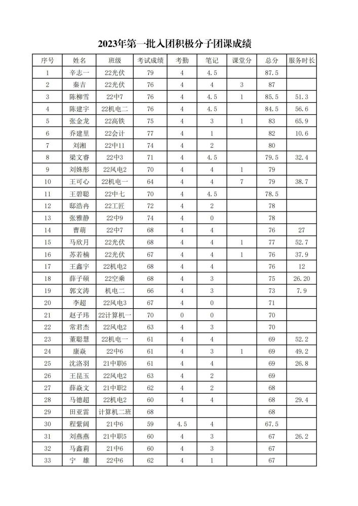 我院2023年第一批入團(tuán)積極分子團(tuán)課成績(jī)