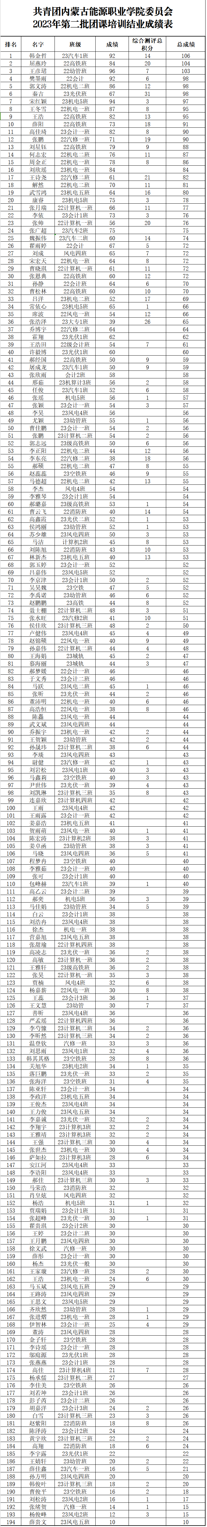 共青團(tuán)內(nèi)蒙古能源職業(yè)學(xué)院委員會(huì)2023年第二批團(tuán)課培訓(xùn)結(jié)業(yè)成績表