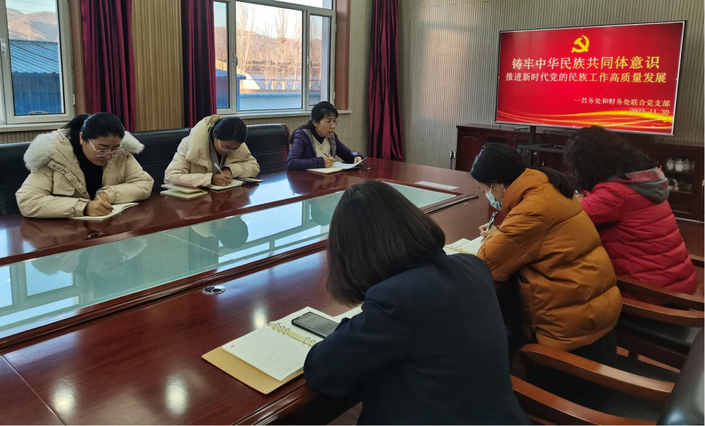 2023年12月1日教務(wù)處和財(cái)務(wù)處聯(lián)合黨支部召開了主題為:“鑄牢中華民族共同體意識推進(jìn)新時(shí)代黨的民族工作高質(zhì)量發(fā)展”的主題會議,本次會議由支部書記劉國華領(lǐng)學(xué),支部全體成員參加學(xué)習(xí)。