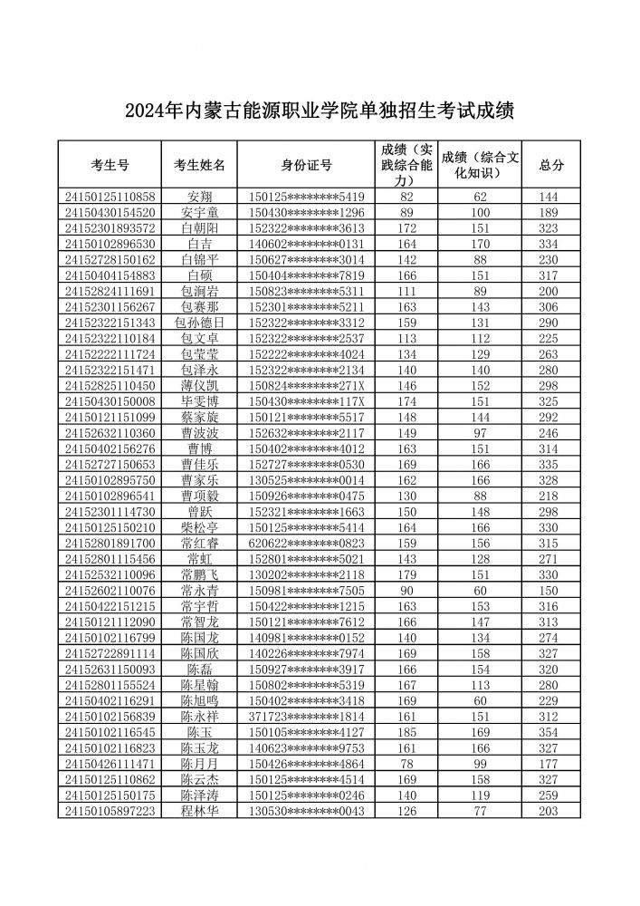 2024年內(nèi)蒙古能源職業(yè)學(xué)院?jiǎn)为?dú)招生考試成績(jī)