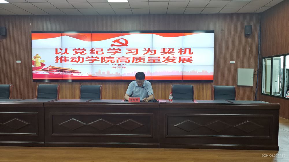 為進(jìn)一步增強(qiáng)黨員的規(guī)矩意識和紀(jì)律意識,推動黨紀(jì)學(xué)習(xí)教育走深走實。6月20日下午,在學(xué)院多功能報告廳,學(xué)院黨委書記陳澤鋒“以黨紀(jì)學(xué)習(xí)為契機(jī)推動學(xué)院高質(zhì)量發(fā)展”為主題,為全體黨員、全院教職工和入黨積極分子講授了一堂生動的黨課。