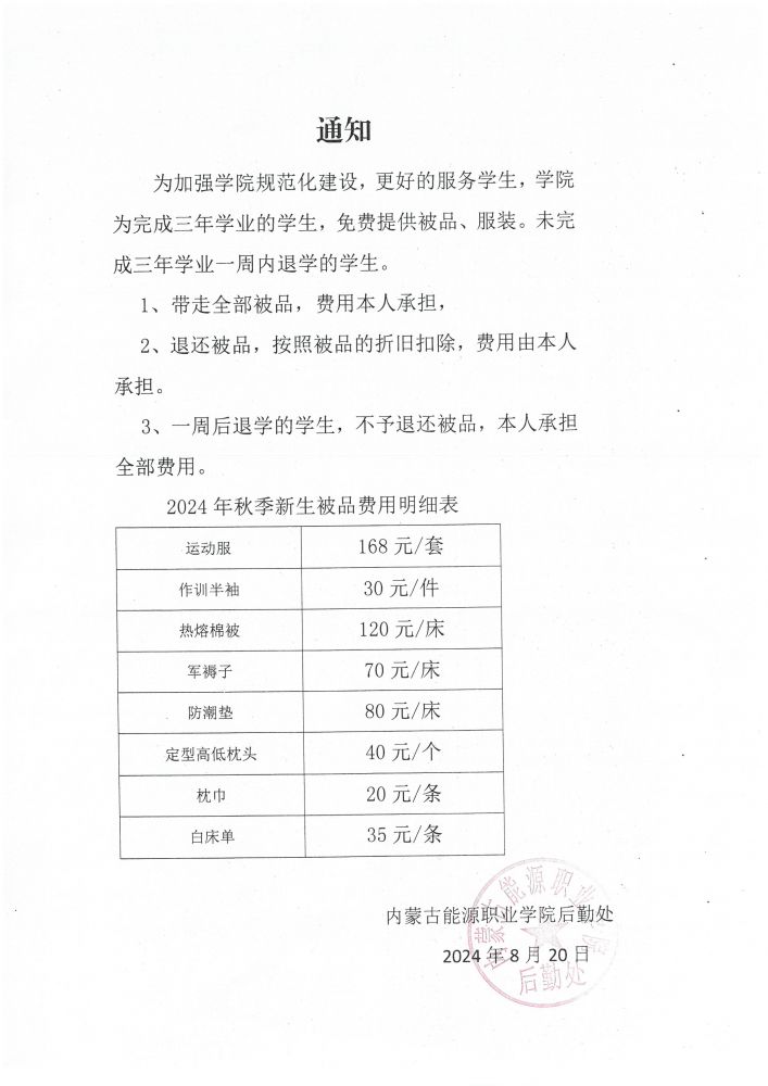 關于學院被品的通知