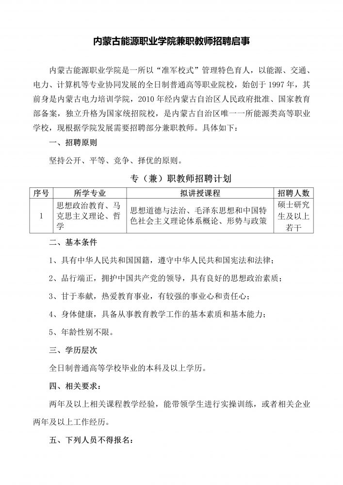 內(nèi)蒙古能源職業(yè)學(xué)院兼職教師招聘啟事