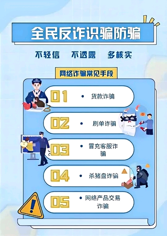 當(dāng)前,電信網(wǎng)絡(luò)詐騙犯罪形勢嚴(yán)峻,已成為發(fā)案最多、上升最快、涉及面最廣、人民群眾反映最強(qiáng)烈的犯罪類型。為提升廣大群眾識騙防騙能力,有力震懾違法犯罪分子,我們一起學(xué)習(xí)了解電信詐騙,助同學(xué)們輕松應(yīng)對電信騙局,讓我們一起努力,共筑反詐防線。