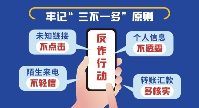 主動(dòng)下載并注冊“國家反詐中心”APP,從源頭上防止被騙。如遇可疑情況,請及時(shí)報(bào)警。