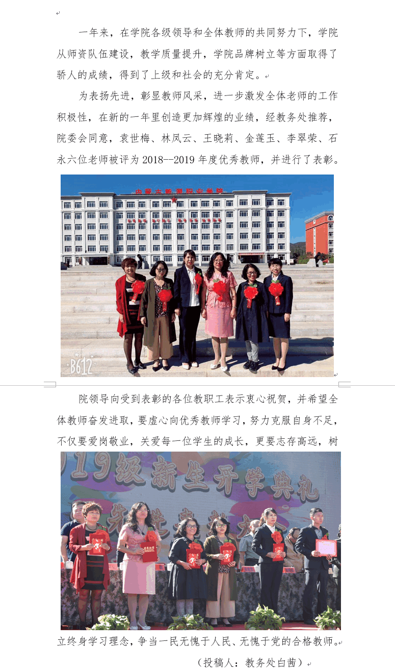 學(xué)院組織表彰2018--2019年度優(yōu)秀教師