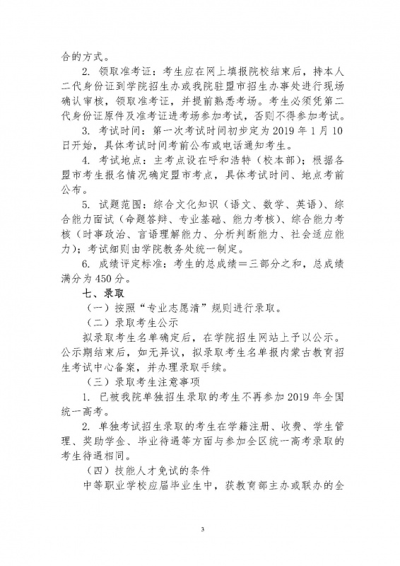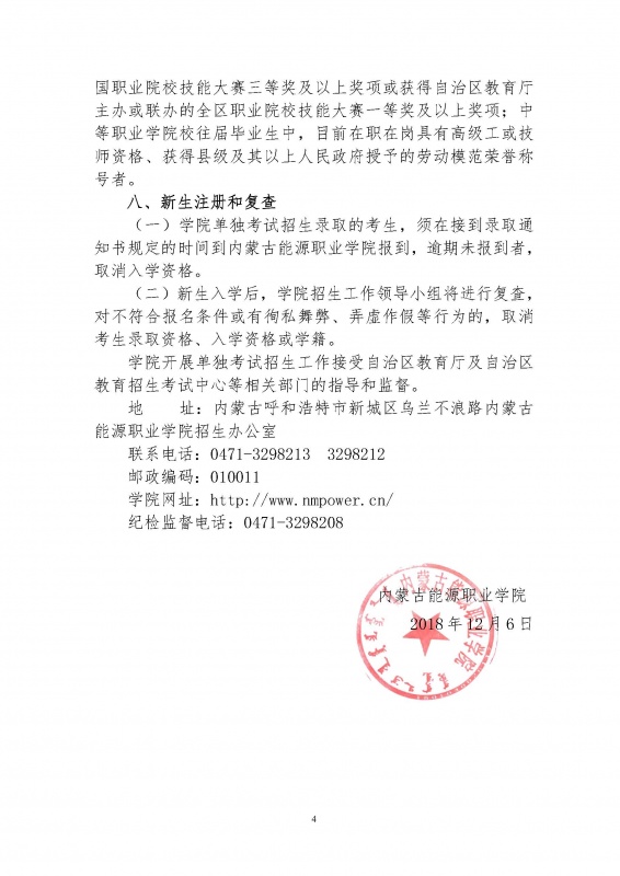 內(nèi)蒙古能源職業(yè)學(xué)院能源 2019 年單獨考試招生工作方案