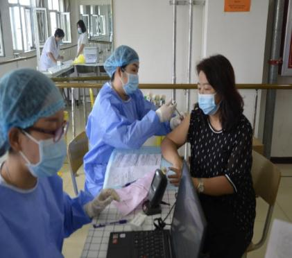負責我院疫苗接種的單位是內(nèi)蒙古婦幼保健醫(yī)院,醫(yī)護人員到校就位投入接種點崗位,分工明確井然有序;對接種疫苗的人員耐心引導,對接種疫苗完畢的老師及同學進入留侯觀察室后,細心詢問是否又不良反應(yīng),有無不適感。
