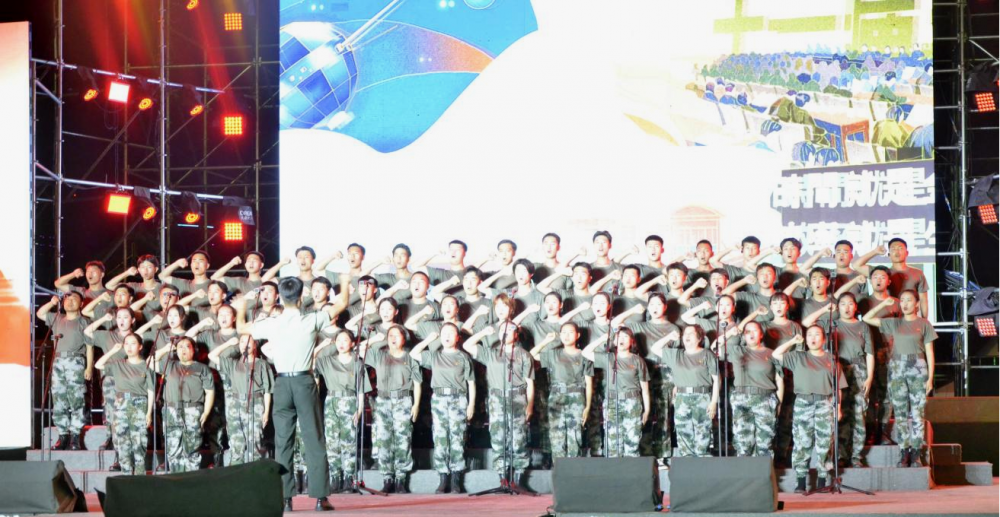 學(xué)院合唱隊(duì)整齊的隊(duì)伍,過硬的作風(fēng),積極的態(tài)度,樸素統(tǒng)一迷彩的著裝,學(xué)院師生頭頂烈日,克服困難,在極短的時(shí)間內(nèi)一遍又一遍的對節(jié)目進(jìn)行排練,用超強(qiáng)的凝聚力謳歌黨、謳歌祖國和人民,用歌聲唱響愛黨愛國的時(shí)代主旋律。