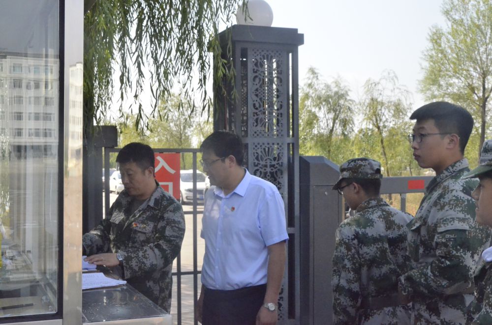 陳書(shū)記一行首先來(lái)到學(xué)校門(mén)口,在學(xué)生值勤門(mén)崗、學(xué)院大門(mén)門(mén)衛(wèi)兩個(gè)點(diǎn),陳書(shū)記分別同值勤學(xué)生、門(mén)衛(wèi)安保人員進(jìn)行親切交談、詳細(xì)了解工作情況,詢(xún)問(wèn)應(yīng)急處理機(jī)制,查看應(yīng)急防暴裝備,最后對(duì)節(jié)日前夕還堅(jiān)守在崗位的執(zhí)勤人員致以節(jié)日的問(wèn)候。在學(xué)院食堂,陳書(shū)記一行查看食材、樣品、后廚衛(wèi)生等情況。陳書(shū)記強(qiáng)調(diào),“要保障食材新鮮、安全,要讓師生們吃到健康、有營(yíng)養(yǎng)的食物?!弊詈髞?lái)到學(xué)院八一樓,陳書(shū)記依次走訪(fǎng)慰問(wèn)了就業(yè)處、招生處、后勤處、安保處、學(xué)生工作處、財(cái)務(wù)部、教務(wù)處等處室,每到一個(gè)部門(mén),陳書(shū)記和每一名環(huán)節(jié)干部、基層干事進(jìn)行充分的交流,答疑解惑,鼓勁加油,道一句辛苦,說(shuō)一句節(jié)日快樂(lè),感謝堅(jiān)守者的辛勤付出。