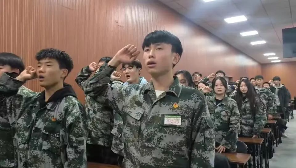 入團(tuán)儀式在嘹亮的國歌聲中拉開帷幕。全體師生目光堅(jiān)定、莊嚴(yán)肅穆,帶著激動的心情唱響國歌,滿腔愛國情在嘹亮的歌聲中激蕩,為入團(tuán)儀式鋪上絢麗的色彩。