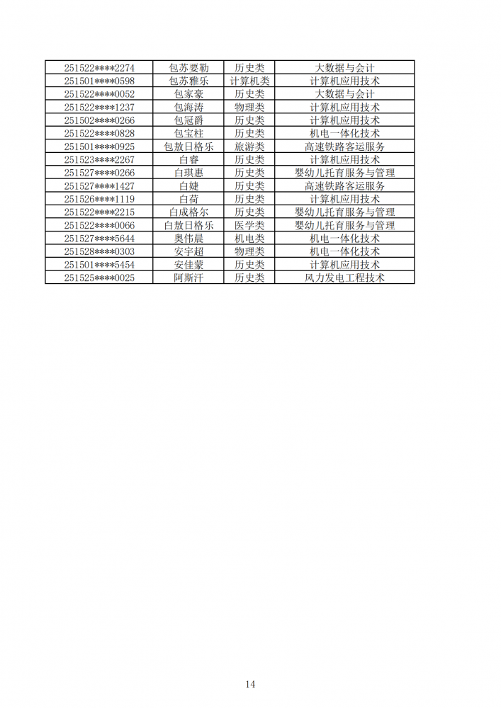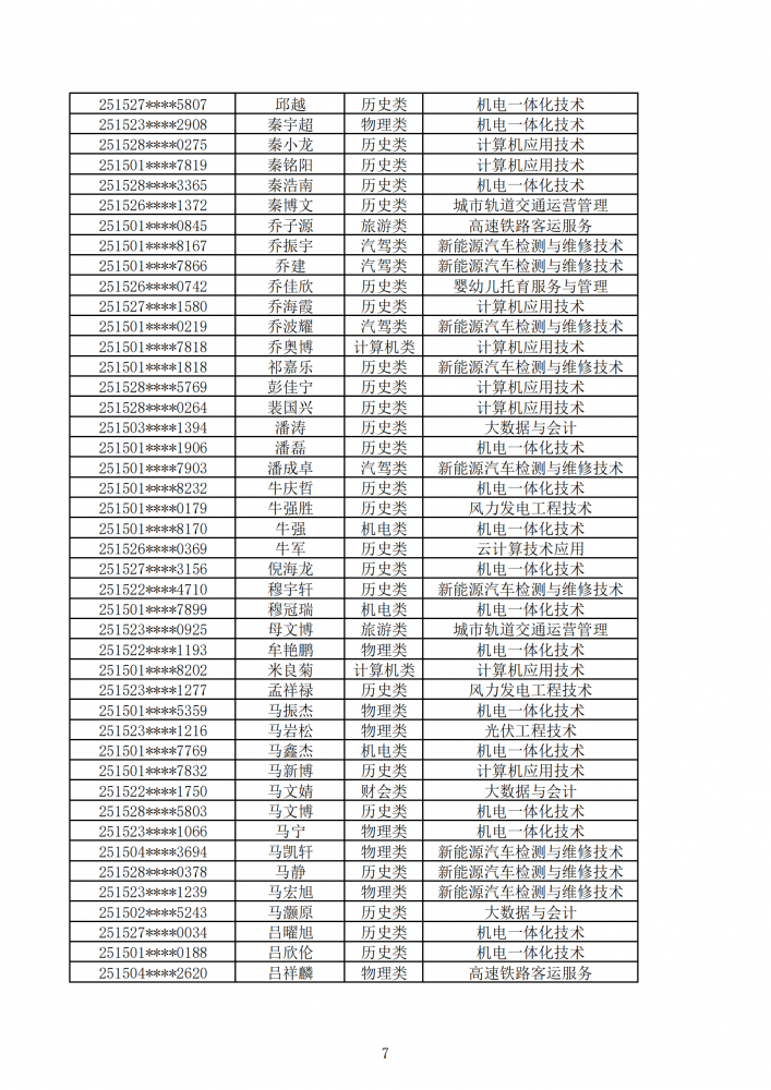 內(nèi)蒙古能源職業(yè)學(xué)院2025年第一次單獨(dú)招生考試擬錄取名單